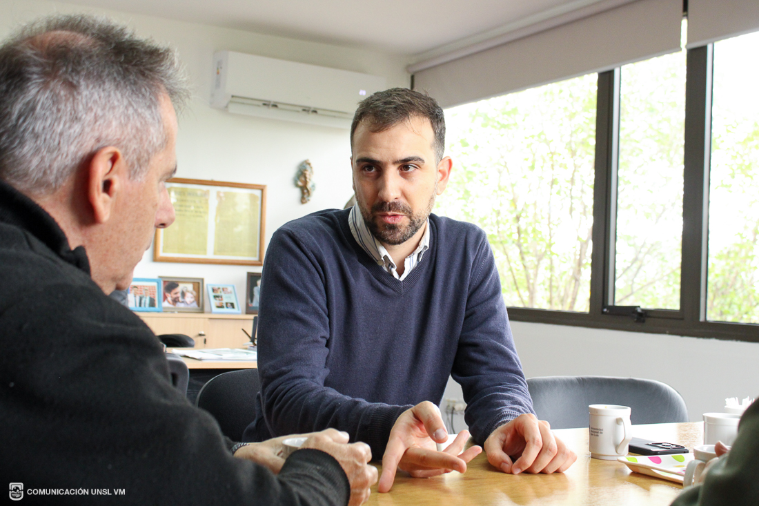 Participaron de la reunión el Mgtr. Hector Flores, Decano de la FCEJS; Abg. Ailin Umpierrez, Secretaria General de la FCEJS; y Martin Perez Ranieri, Coordinador de Relaciones Educativas de la Municipalidad de Villa Mercedes.