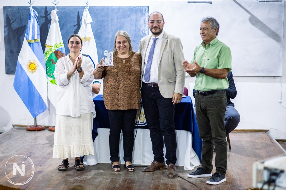 Por su parte, el secretario General de la APUNSL, Tec. Omar Quinteros, luego de desearle feliz día a los y las trabajadores/as nodocentes, recordó la memoria de Alberto Geraiges. «Viendo la calidez, el compromiso, la trayectoria de Carina, yo creo que era justo que una compañera de Mercedes también estuviera presente hoy», dijo y agregó: «te lo merecés por tu trayectoria, tu compromiso, por tus ganas que le ponés a la Institución, y yo creo que todas las cosas tienen que tener sentimientos y pasión, y vos sos una apasionada de la camiseta del nodocente».