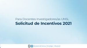 La Secretaría de Ciencia y Tecnología de la UNSL, comunica que desde el jueves 24 de noviembre, se encuentra disponible la Solicitud de Incentivo 2021…