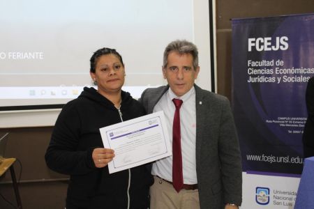 En un momento muy especial en el Cierre de Curso- Taller, en el cual más de 50 feriantes recibieron sus certificados del Curso-Taller Plan de Capacitación “Movimiento Feriante – Emprendedurismo”, actividad académica desarrollada en virtud del Acta Acuerdo firmada el 8 de junio, entre la UNSL y el Ministerio de Desarrollo Social de la Provincia. La misma fue avalada mediante la resolución de decanato Nº 15-671/22.