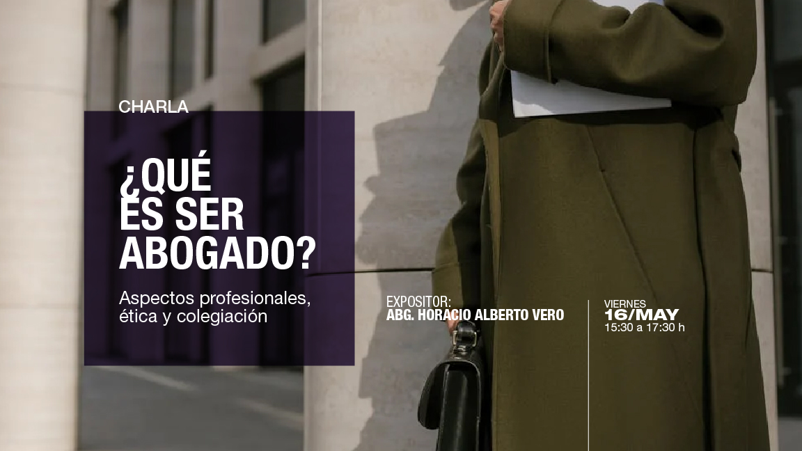 La Secretaría de Extensión Universitaria invita a la charla “¿Qué es ser abogado? Aspectos profesionales, ética y colegiación”, que brindará el Abg. Horacio Alberto Vero, el próximo 16 de mayo de 15:30 a 17:30 horas en el Instituto Escuela de Economía, Negocios y Transferencia Tecnológica (Pescadores 314).
