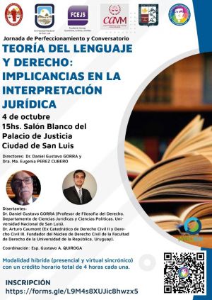 El Departamento de Ciencias Jurídicas y Políticas invita a la comunidad universitaria, a la Jornada de Perfeccionamiento y Conversatorio sobre “Teoría del Lenguaje y Derecho: Implicancias en la Interpretación Jurídica del Contrato” y al Ateneo Internacional sobre “Derecho Ambiental y Derecho de Daños”, que se llevarán a cabo respectivamente el 4 y 5 de octubre de 2022 en San Luis y Villa Mercedes.