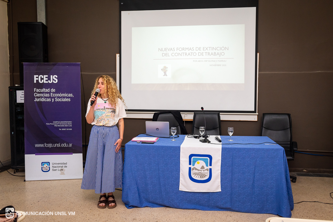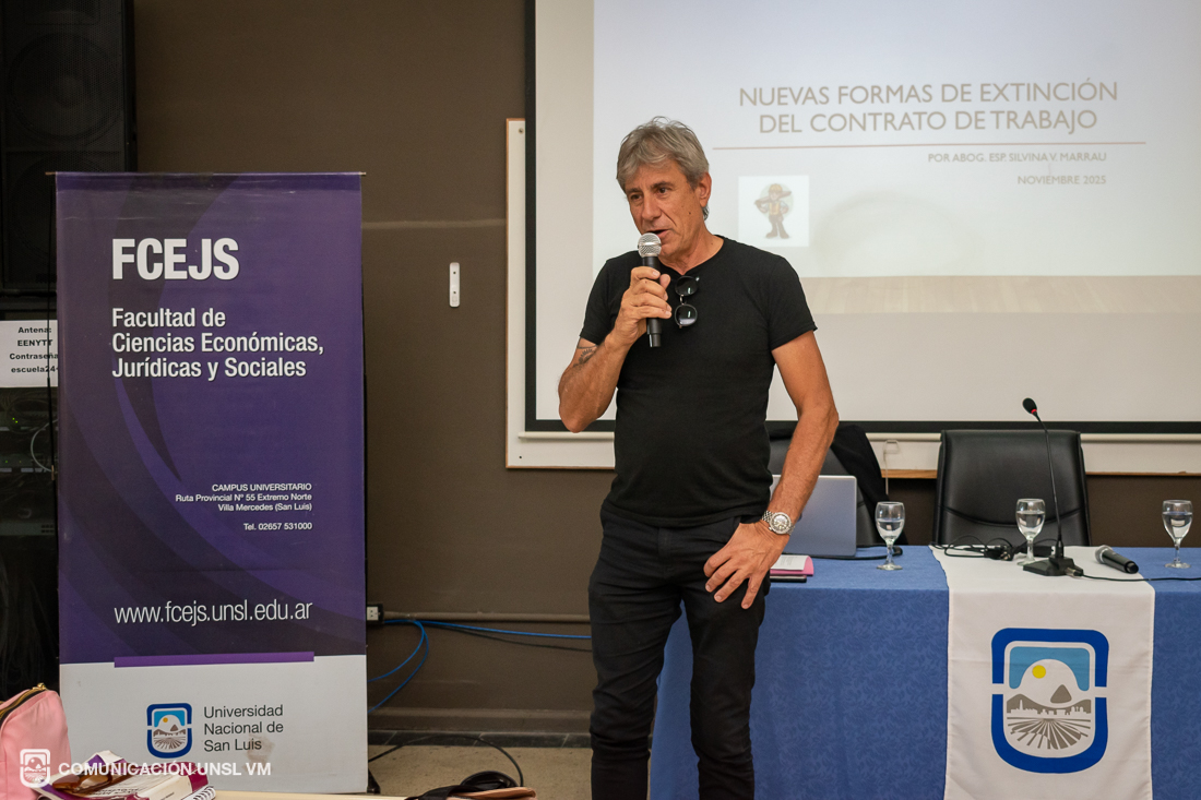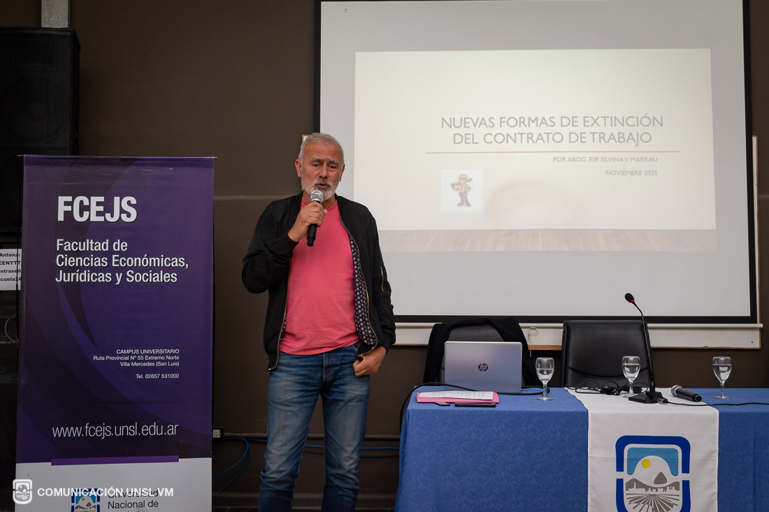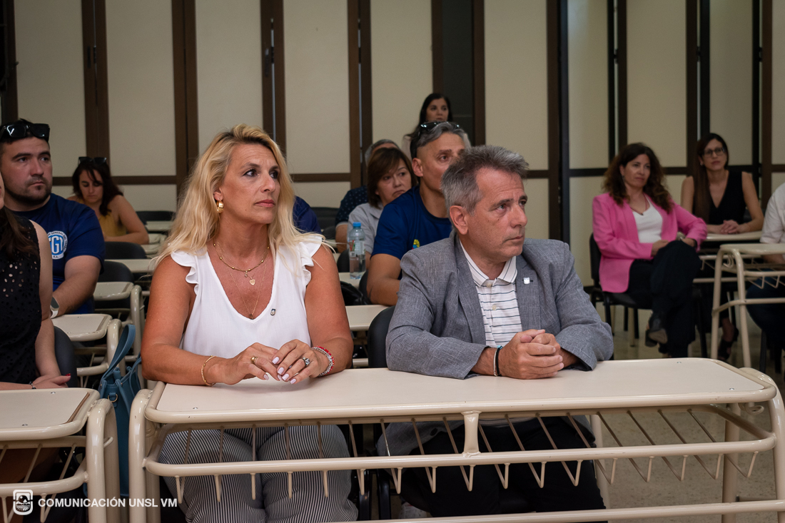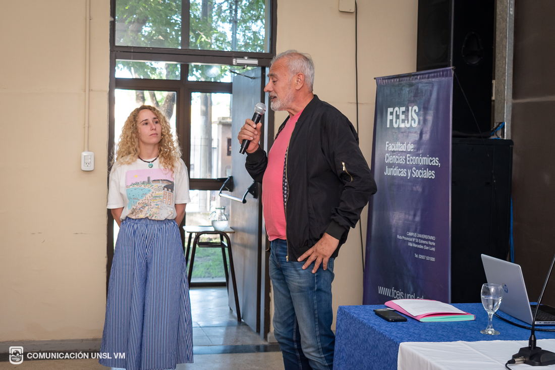 En sus palabras de bienvenida, la Secretaria de Extensión Universitaria, Lic. Nazarena Echandía, presentó los objetivos y el origen de este nuevo ciclo de encuentros orientado a reflexionar sobre las transformaciones y disputas en el mundo del trabajo. A continuación, Víctor Gómez, Secretario General de la UOM Villa Mercedes y Secretario General de la CGT, ofreció un discurso, en el que destacó la rapidez con la que la FCEJS logró concretar esta propuesta surgida en instancias de diálogo semanas previas entre la Universidad y los sindicatos.