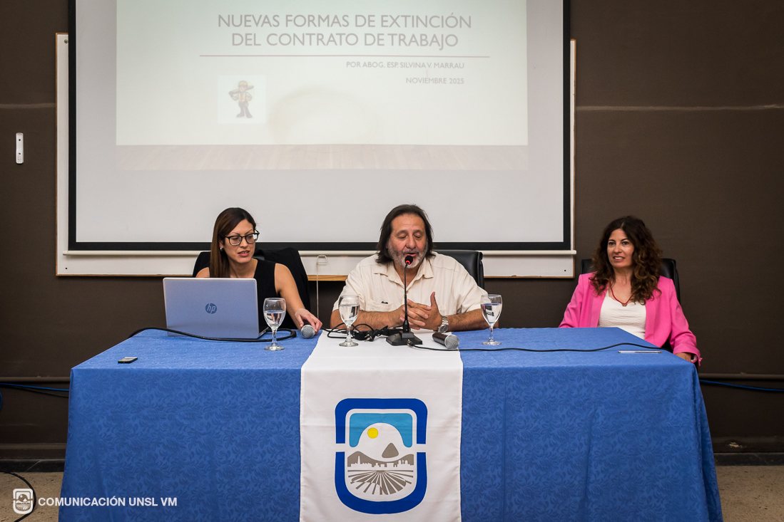 Tras las palabras iniciales, el ciclo continuó con las disertaciones de la Esp. Silvina Marrau, el Abg. Alberto Mariani y la Abg. Vanesa Sosa, quienes abordaron la temática “El mundo del trabajo y la Ley Bases”.