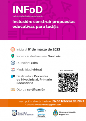Destinado a docentes de nivel inicial, primario, secundario y superior.