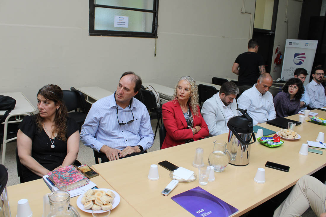 Celebrada en la sede de la EEN&TT, la reunión contó con la participación de la vicedecana de la FCEJS, Esp. Patricia Morán; el director ejecutivo de la EEN&TT, Mgtr. Jorge Sosa; el Subdirector de Proyectos, Mgtr. Nicolas Diaz; el Subdirector Financiero y Legal, CPN Marcos Agustín Garro Cavallaro; el Subdirector de Planificación y Vinculación Institucional, CPN Ignacio Enrique Pérez Cometto.