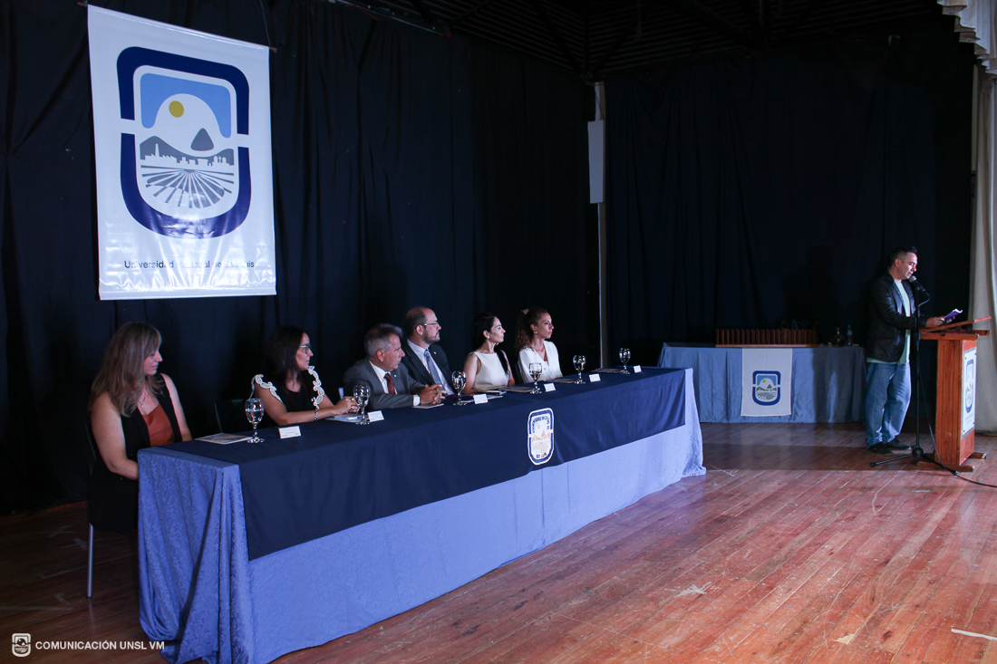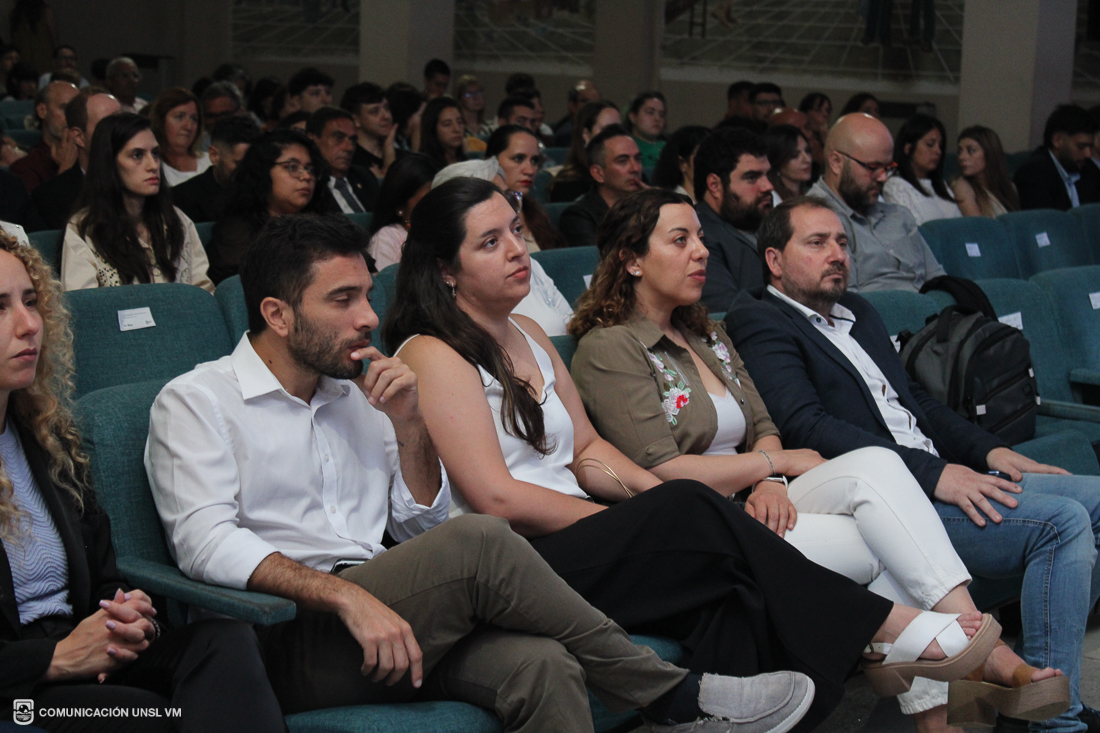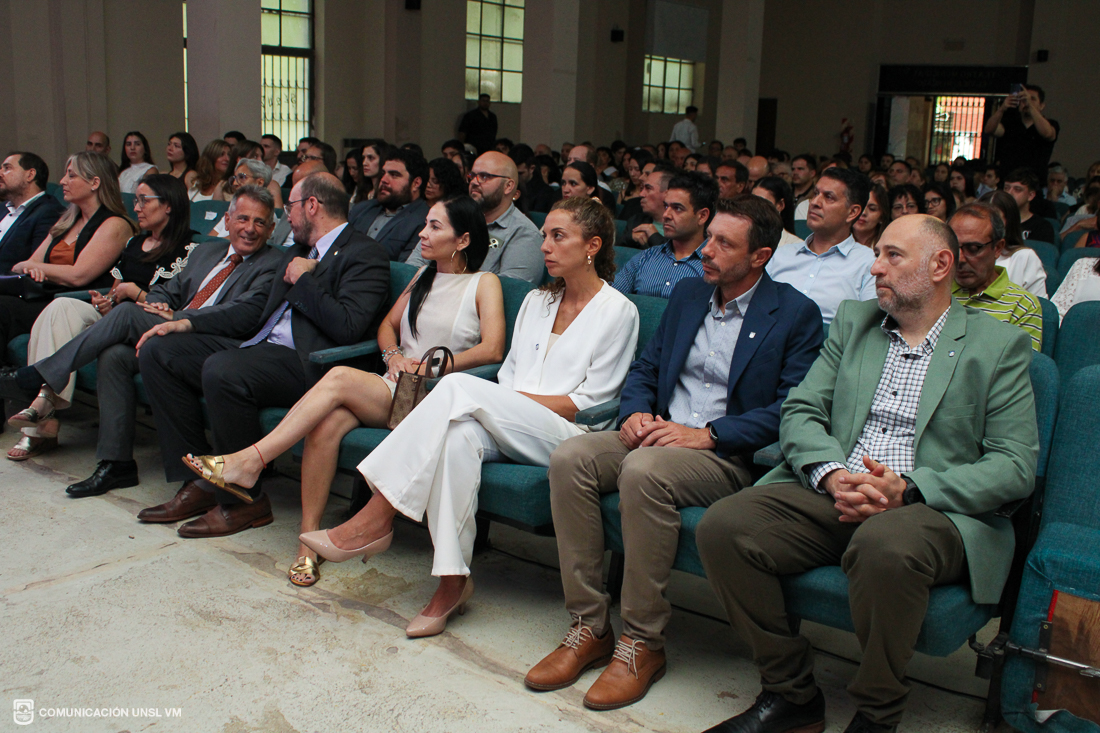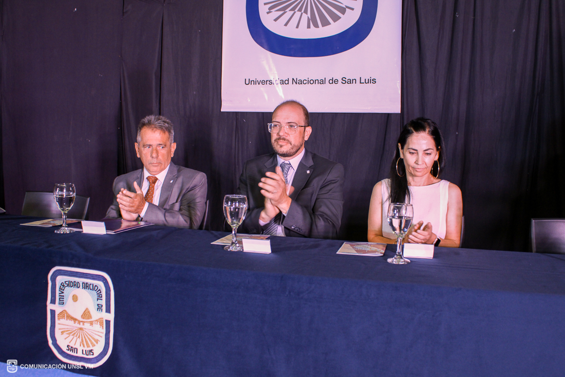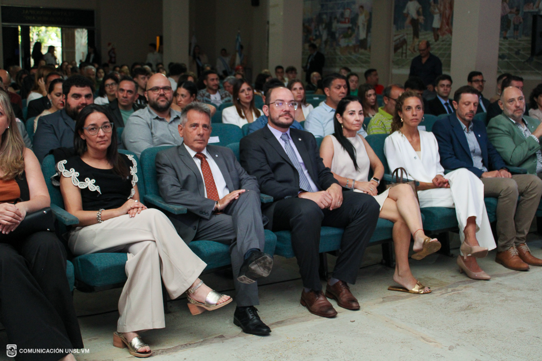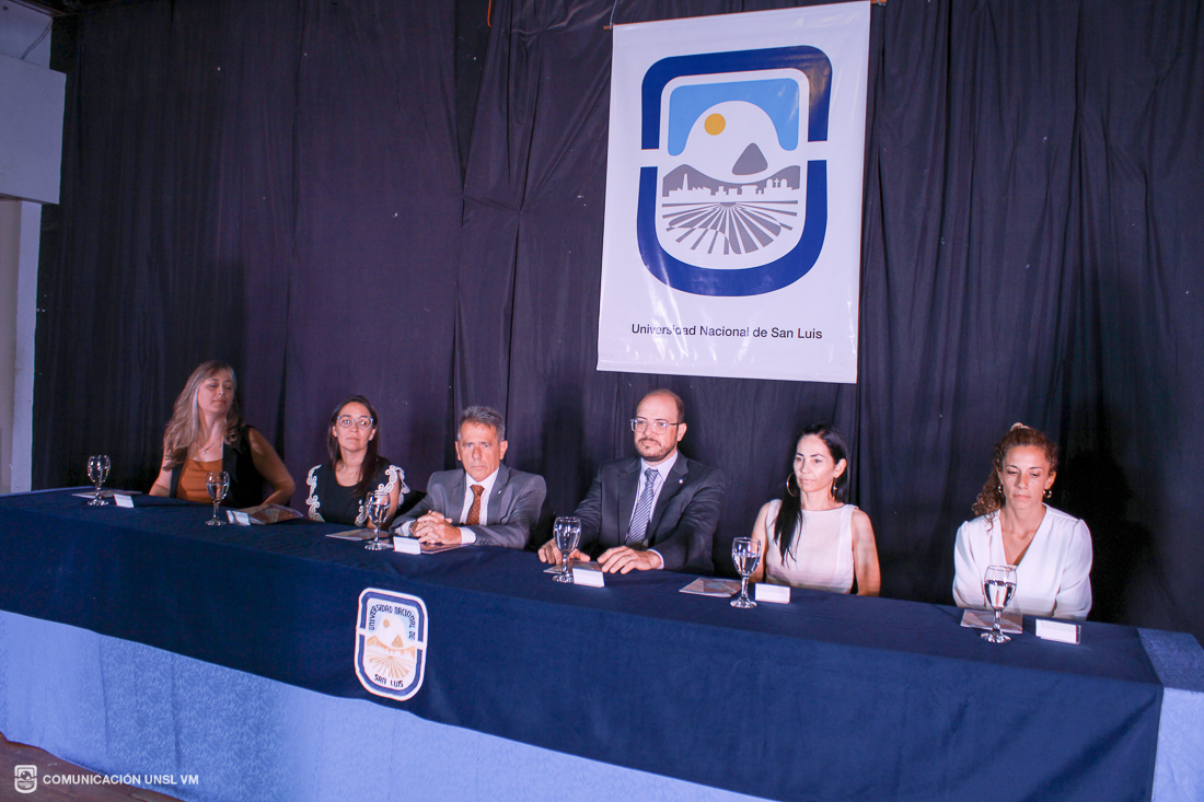 La ceremonia estuvo presidida por el rector de la UNSL, Dr. Raúl Gil, junto al decano de la FCEJS, Mgtr. Héctor Flores; la Secretaria Académica de la UNSL, Dra. Rosa Lorenzo; la Subsecretaria de Formación de Posgrado de la UNSL, Dra. Marina Beatriz Fantin; la Secretaria Académica de la FCEJS, Lic. Pamela Bianco; y la Secretaria de Investigación y Posgrado de la FCEJS, Mgtr. Aleyen Neme.