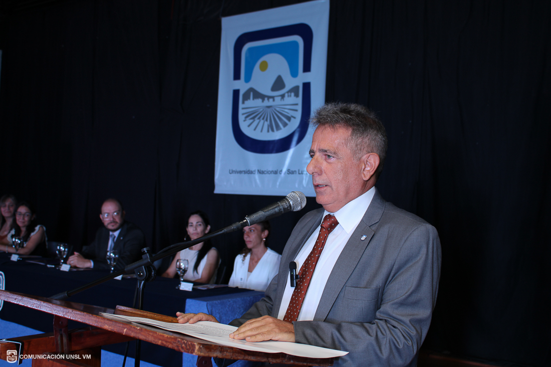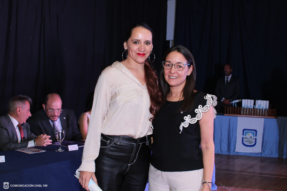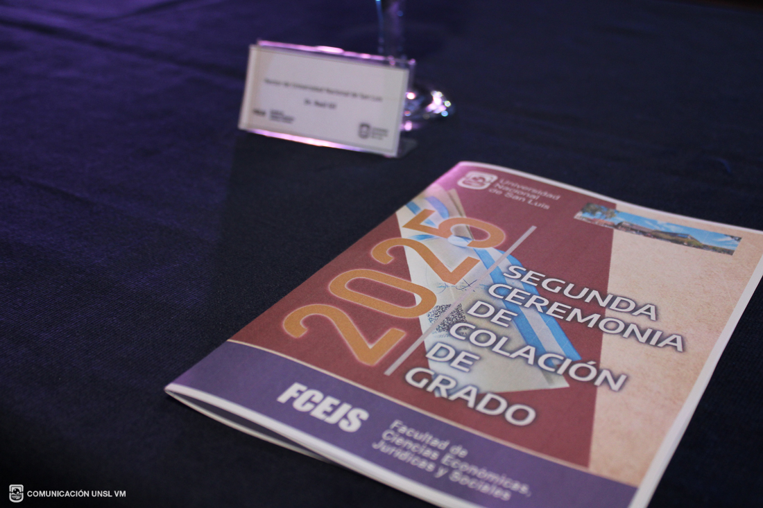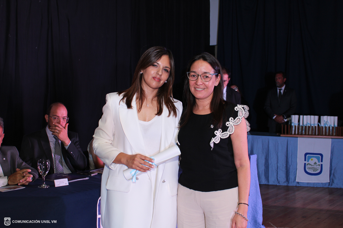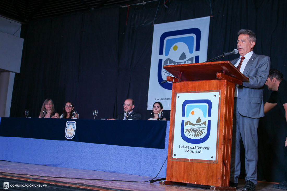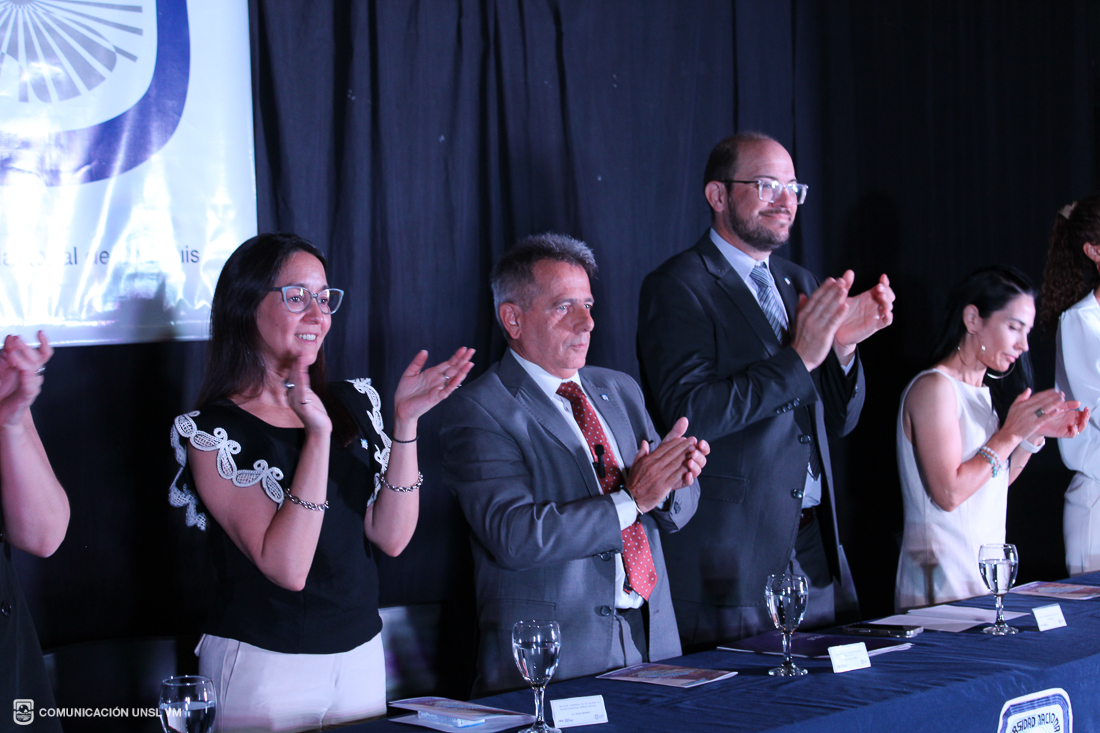 La ceremonia estuvo presidida por el rector de la UNSL, Dr. Raúl Gil, junto al decano de la FCEJS, Mgtr. Héctor Flores; la Secretaria Académica de la UNSL, Dra. Rosa Lorenzo; la Subsecretaria de Formación de Posgrado de la UNSL, Dra. Marina Beatriz Fantin; la Secretaria Académica de la FCEJS, Lic. Pamela Bianco; y la Secretaria de Investigación y Posgrado de la FCEJS, Mgtr. Aleyen Neme.