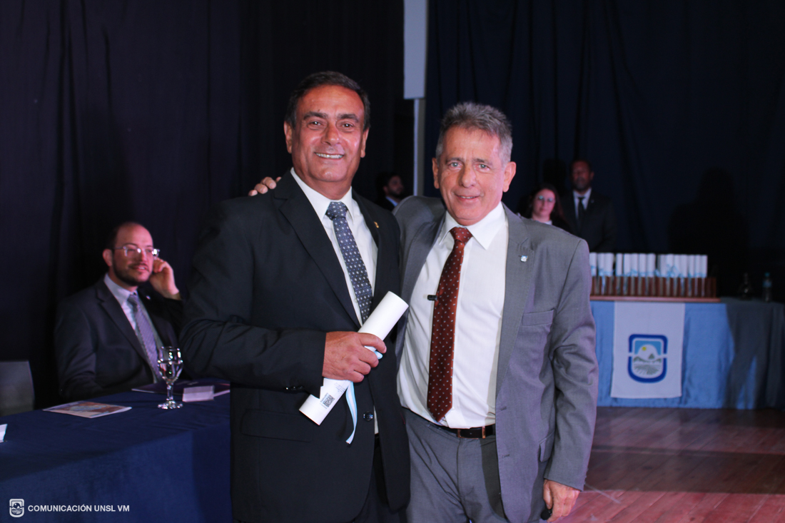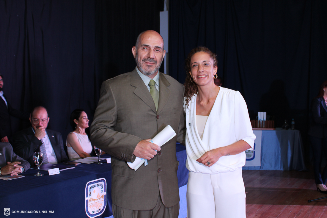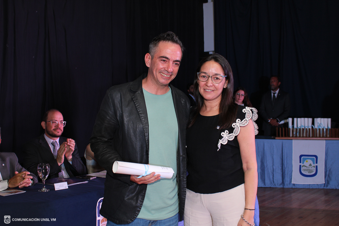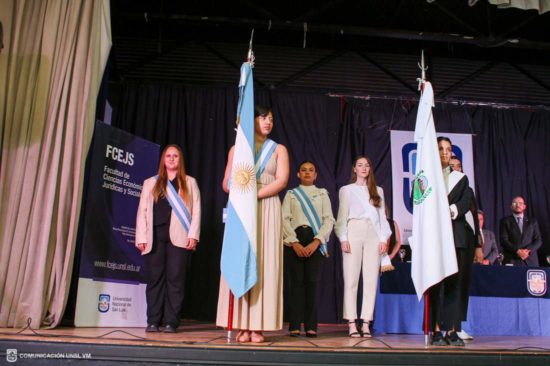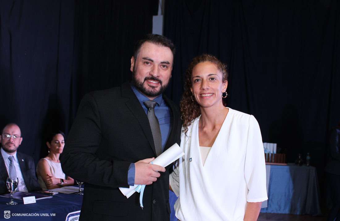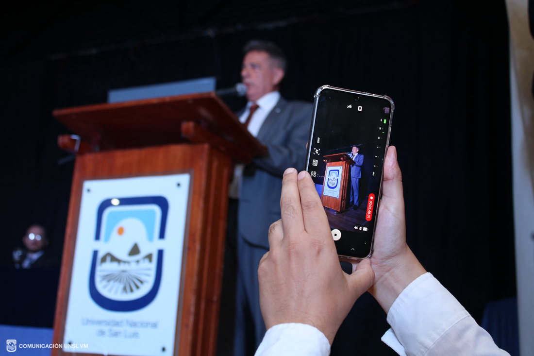 La ceremonia estuvo presidida por el rector de la UNSL, Dr. Raúl Gil, junto al decano de la FCEJS, Mgtr. Héctor Flores; la Secretaria Académica de la UNSL, Dra. Rosa Lorenzo; la Subsecretaria de Formación de Posgrado de la UNSL, Dra. Marina Beatriz Fantin; la Secretaria Académica de la FCEJS, Lic. Pamela Bianco; y la Secretaria de Investigación y Posgrado de la FCEJS, Mgtr. Aleyen Neme.