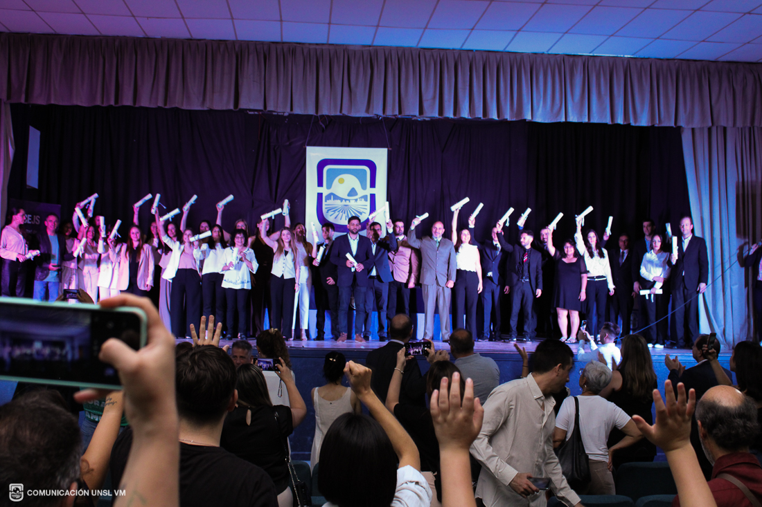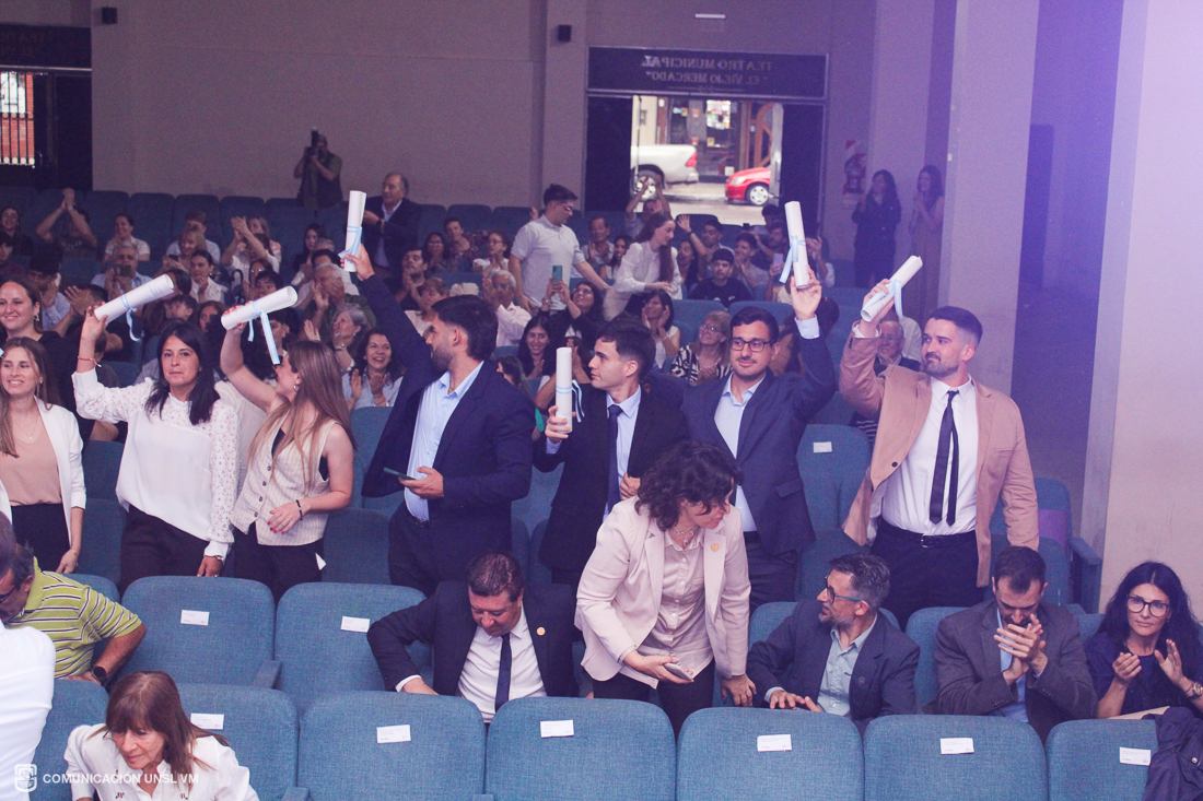 La ceremonia finalizó con la entrega de diplomas, marcando un nuevo capítulo en la trayectoria académica de quienes hoy egresan de la UNSL, una institución nacida del reclamo popular del pueblo de Villa Mercedes, que continúa formando profesionales para el desarrollo de la región y del país.