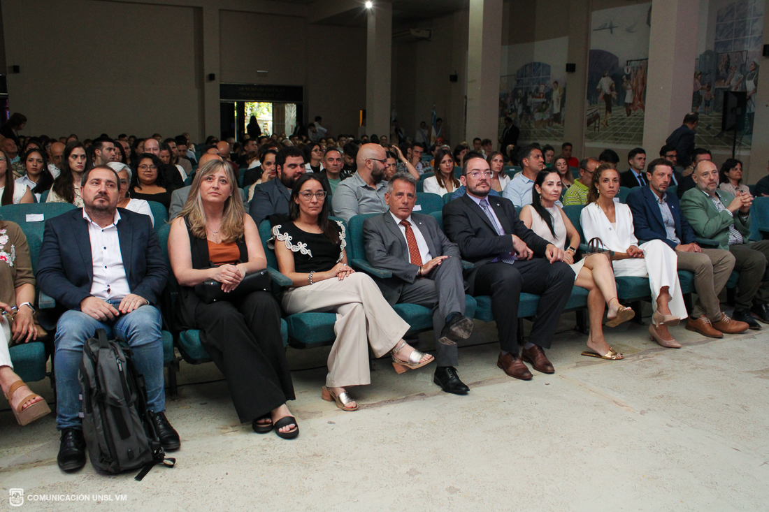 El acto contó con la presencia del decano de la FICA, Dr. Federico Serra; el vicedecano de la FICA, Ing. Guillermo Martínez; el Director del Departamento de Ciencias Jurídicas y Políticas, Abg. Diego Castillo; la Subdirectora del Departamento de Ciencias Económicas, CPN. Mariana Rodríguez; la Secretaria General de la FCEJS, Abg. Ailín Umpierrez Varela; la Secretaria de Extensión Universitaria de la FCEJS, Lic. Nazarena Echandía; el Secretario de Planeamiento, Esp. Joaquín Flores; Subsecretario  de Infraestructura, Informática y Servicios Comunes, Esp.  Lucas Rodrigo, el Subsecretario de Comunicación, Ceremonial y Protocolo, Lic. Cristian Carlos Payero; el Subsecretario de Asuntos Estudiantiles y Bienestar Universitario, Ing. Nicolás Ramos, autoridades de instituciones educativas, de la municipalidad de Villa Mercedes, colegios profesionales, agrupaciones estudiantiles, docentes, nodocentes, estudiantes, familiares y allegados.