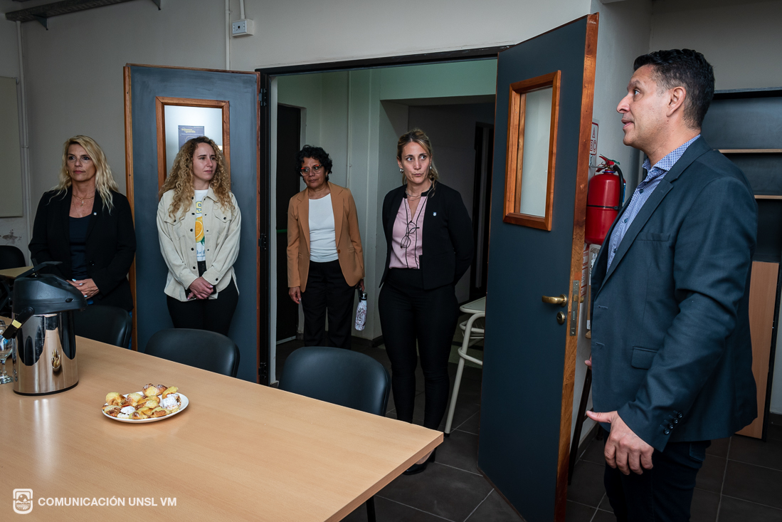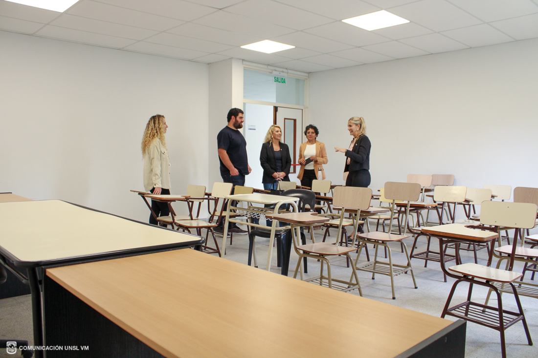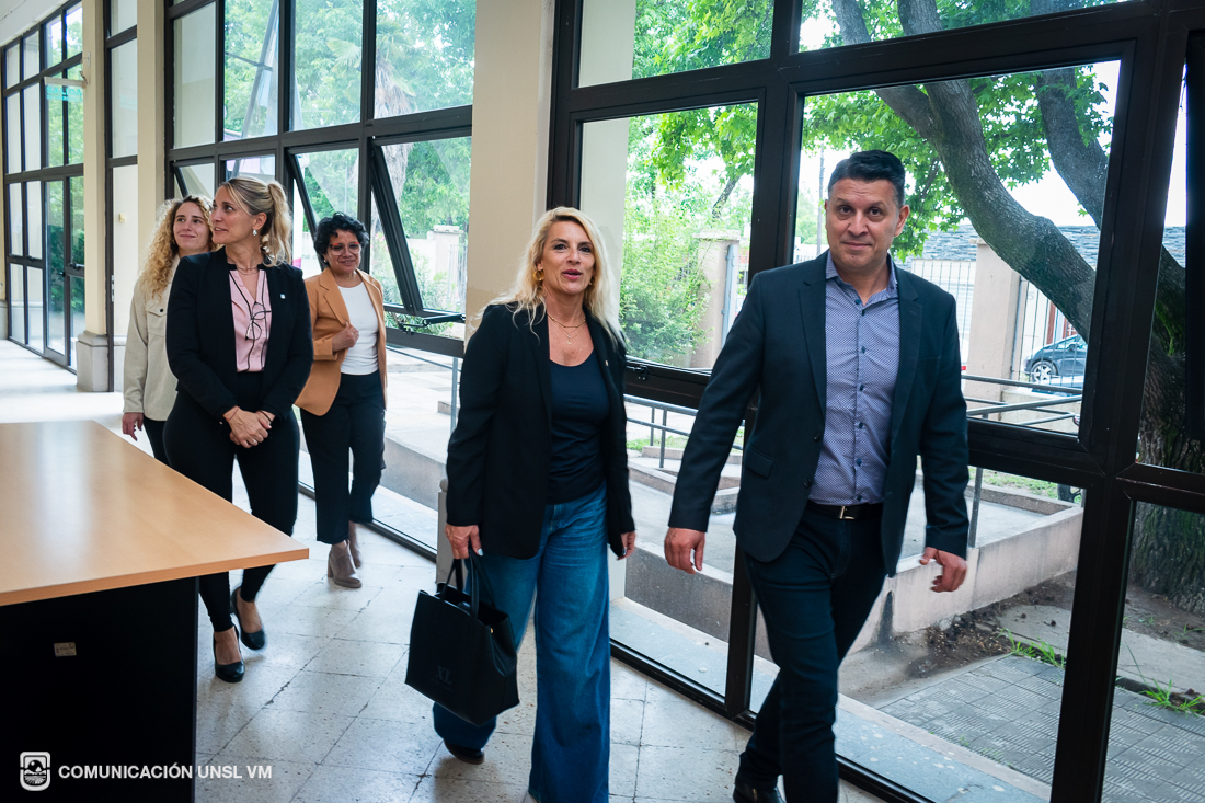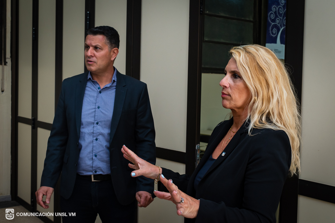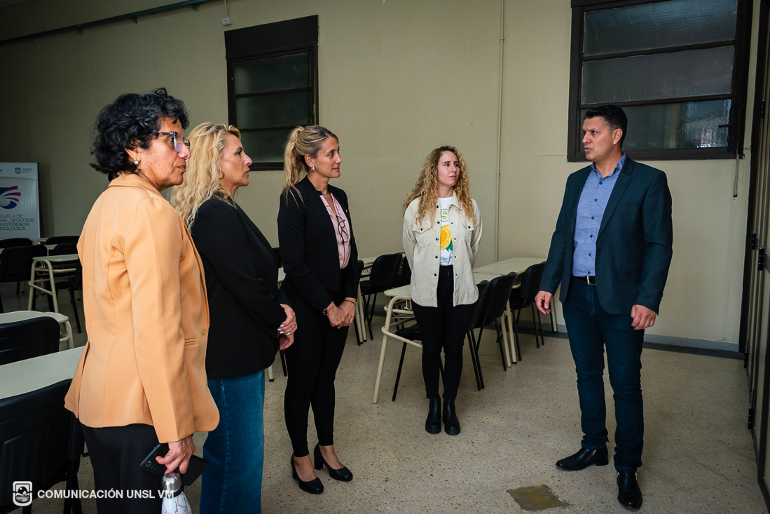 Posteriormente, la decana y la secretaria de Extensión de la FTU visitaron las instalaciones de Radio Universidad Villa Mercedes, donde participaron de una entrevista con el equipo de la emisora. Luego recorrieron las Aulas Especiales de la FCEJS y la Escuela de Economía, Negocios y Transferencia Tecnológica.