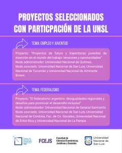 Proyectos seleccionados con participación de la Universidad Nacional de San Luis