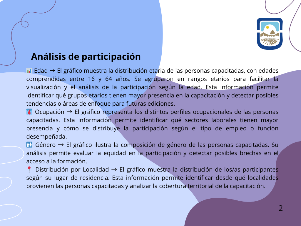 Además, las edades de las y los asistentes variaron entre los 16 y los 64 años, con una fuerte presencia de personas en la franja de 31 a 40 años en múltiples capacitaciones. Este dato demuestra el interés por la formación continua y la actualización de conocimientos en distintas etapas de la vida profesional.