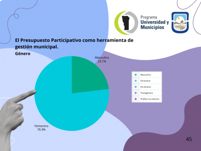 - Taller “El Presupuesto Participativo como herramienta de gestión municipal”: Destinado a fortalecer la vinculación entre la ciudadanía y la administración pública. El 76.9% de los asistentes fueron mujeres, y el 69.2% provenían del interior de la provincia.