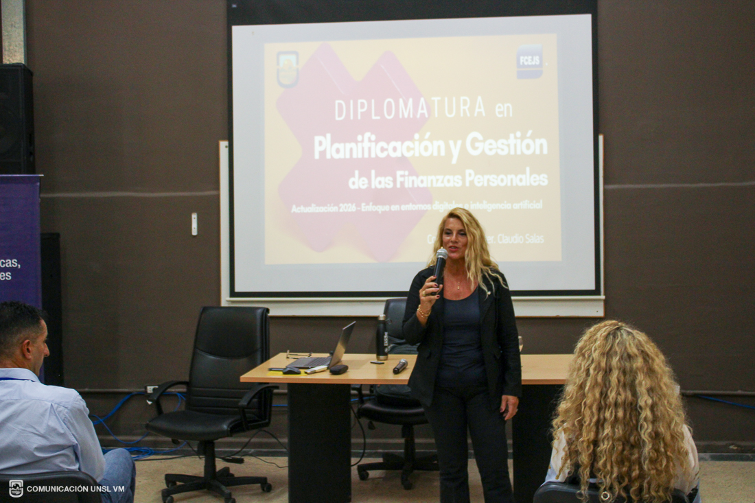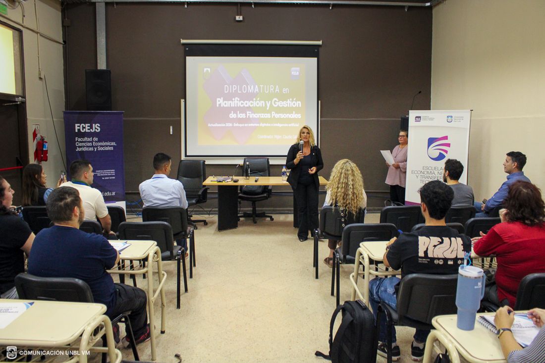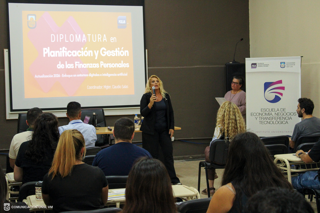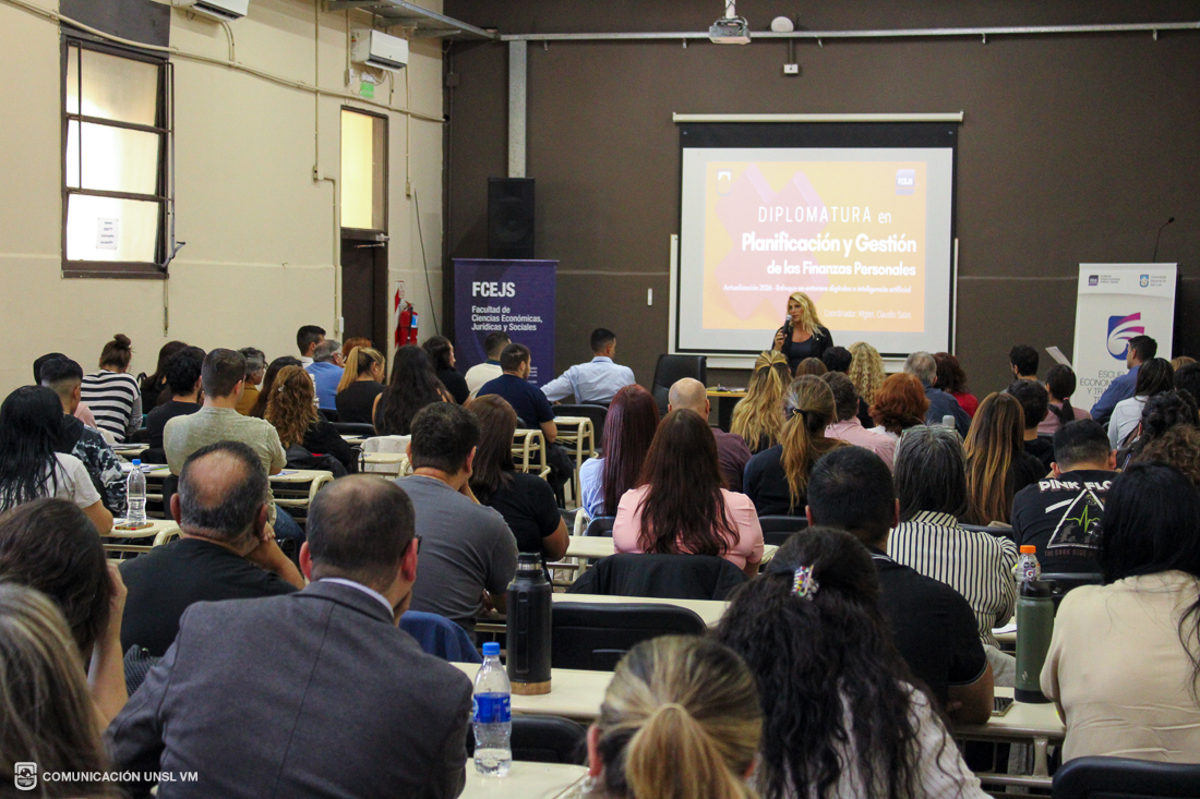 El pasado viernes 10 de abril de 2026, la Facultad de Ciencias Económicas, Jurídicas y Sociales (FCEJS) de la Universidad Nacional de San Luis (UNSL) dio inicio a la segunda cohorte de la Diplomatura en Planificación y Gestión de las Finanzas Personales, con enfoque en entornos digitales e inteligencia artificial. La actividad contó con la participación de más de 85 personas interesadas en fortalecer sus conocimientos financieros.